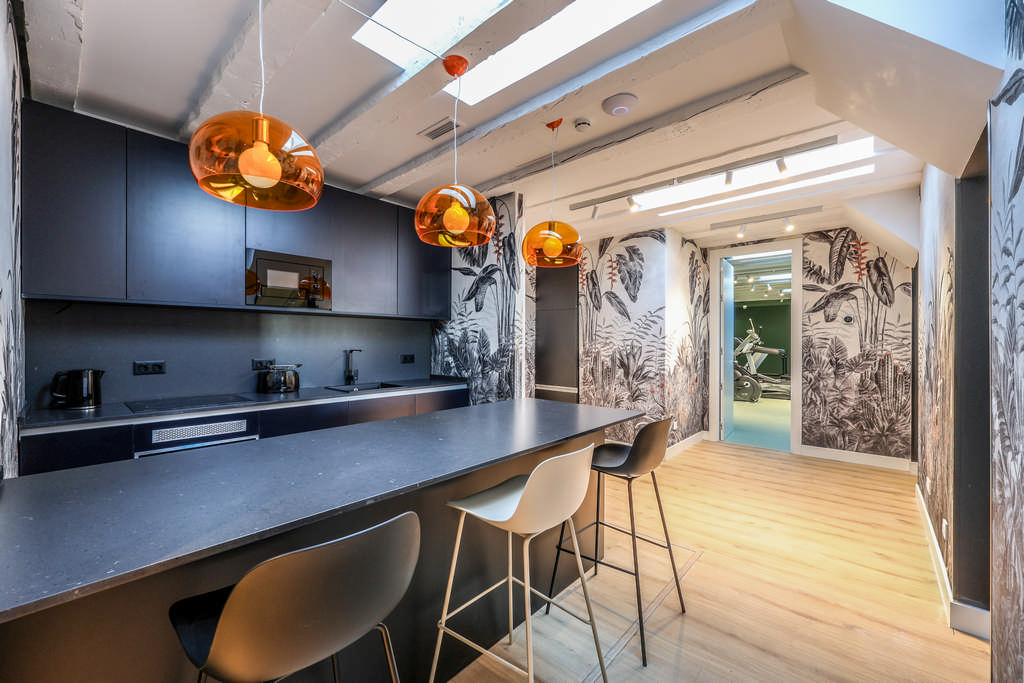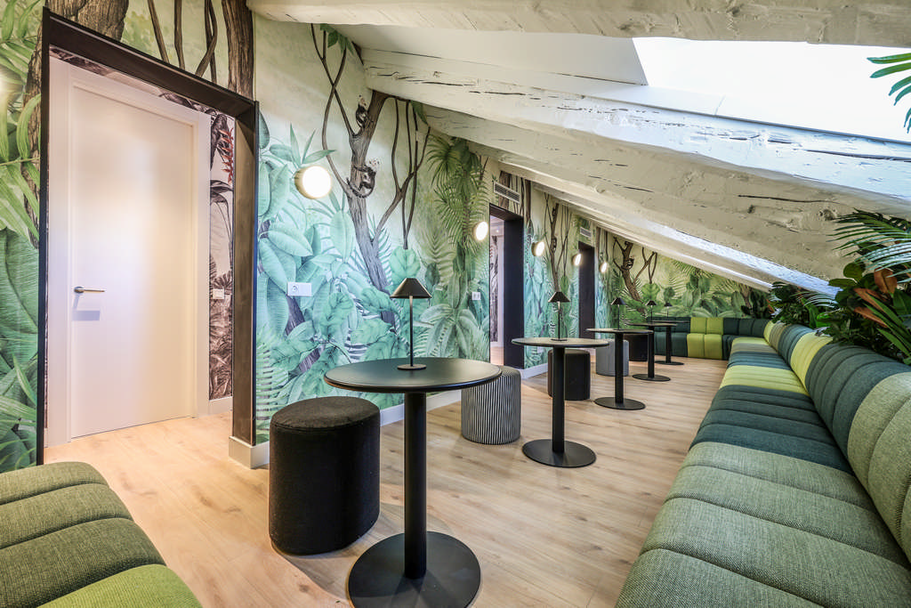 Estudios premium diseñados por el estudio de interiorismo Sapey completamente equipados con kitchenet. Ubicación inmejorable a 100 metros de la Plaza Mayor. Modernas zonas comunes: cocina, sala de meeting, gym, biblioteca, sala de coworking, lavandería y conserjería.